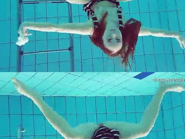 Nina, a pretty young girl with a hairy pussy, in the pool.