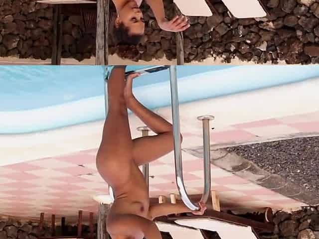 Perfect ass black teen posed outdoor and showed her perfect rounded booty