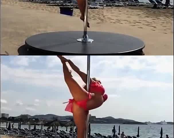 Blond lass doing her pole dancing show