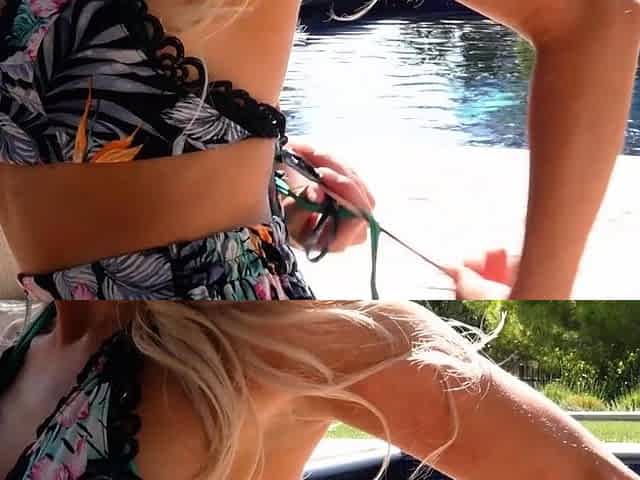 Fucking BFF Behind His Back - wet brunette April Olsen cheating in the pool with her girlfriend