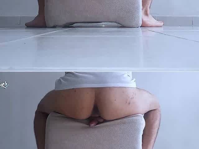 Masturbating my rich weenie with the chair during the time that showing the soles of my feet