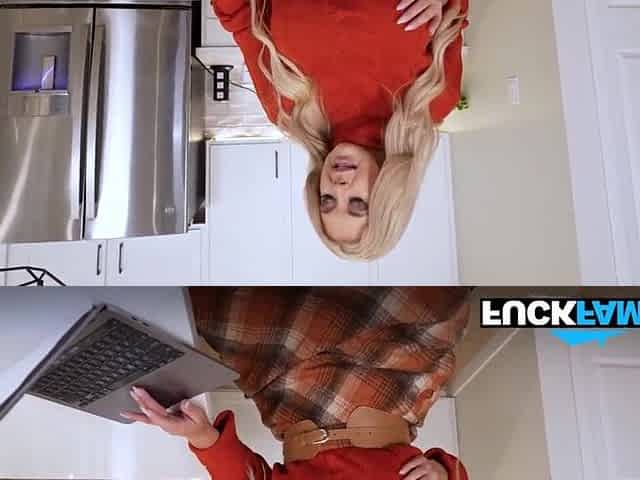 Solo blond Sweety Chick widens her legs on the kitchen counter,in VR.