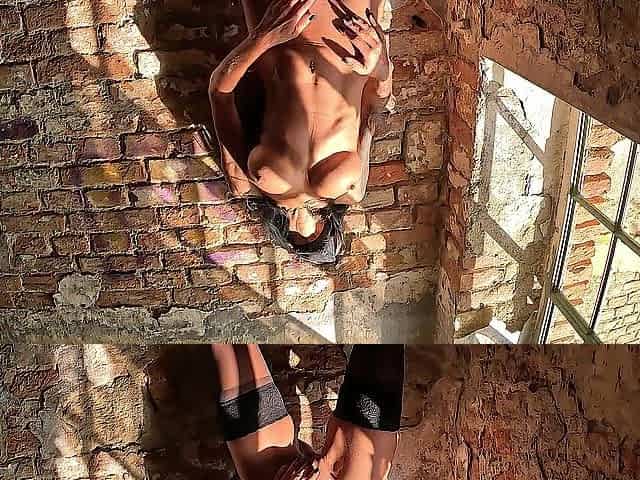 Geil besorge ich es meiner Muschi mit dem Glas-Sextoy öffentlich am lost Place. Geile Nahaufnahmen un
