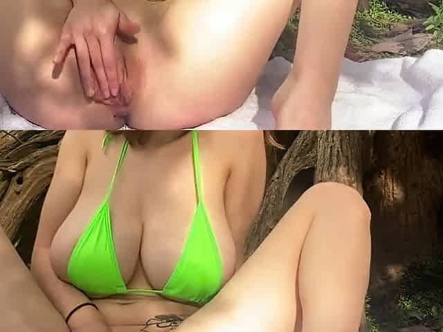 Lovely Amateur teen brunette masturbating outdoor