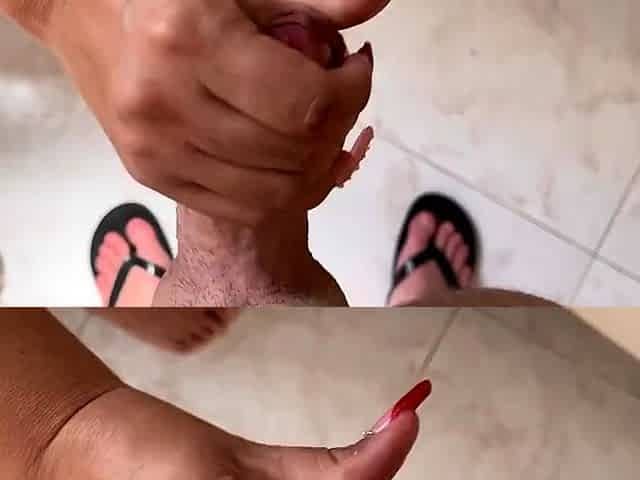Married Escort Milf Handjobs Her Customer In Her Bathroom Until He