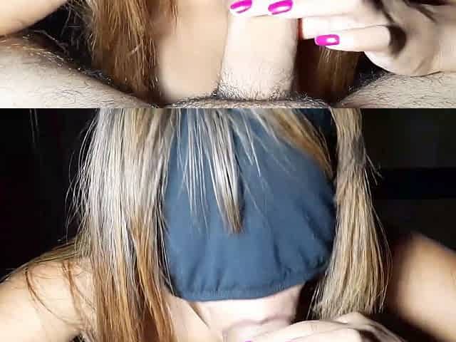 "While I'm videochatting, my husband comes over me and gives me a blowjob and then fucks me in the as"