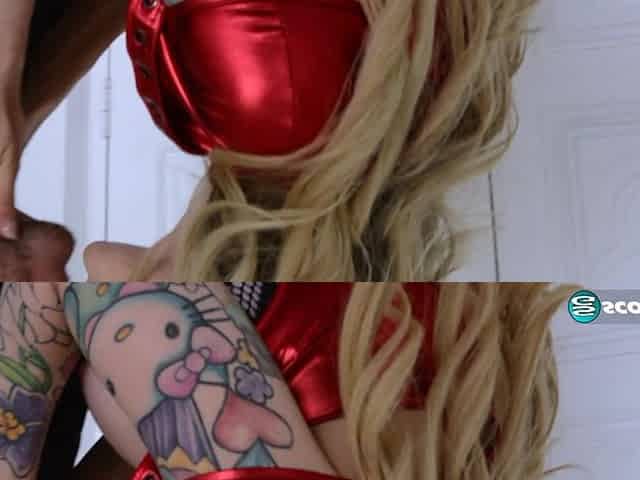 Juggy blonde slut gets boned in doggystyle position after giving head