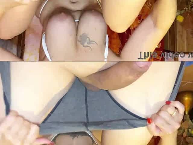 "Hot girlfriend Tit fuck cum on Boobs"