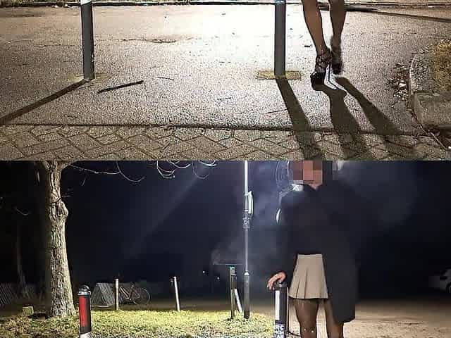 Walk in my ebony transparent Latex hose with high heels