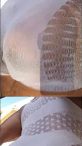 ASMR: Breasty Golden-haired Checks Car in Transparent Suit showing her BUTT