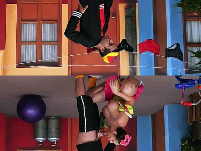 Round-assed Mexican gets fucked by her stepdads thick cock! Hot anal sex on balcony with busty latina