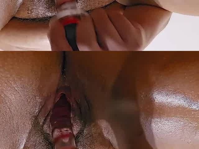 Excited black teen Stuffs her twat with GIANT Dildos.