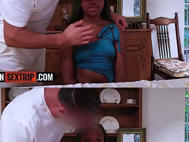 Tiny Latin chick angel likes an aged man and honey tries her 1st massive ramrod
