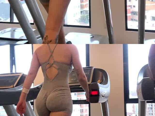 At the Gym: Fitness Girl with a Big Ass Running on the Treadmill