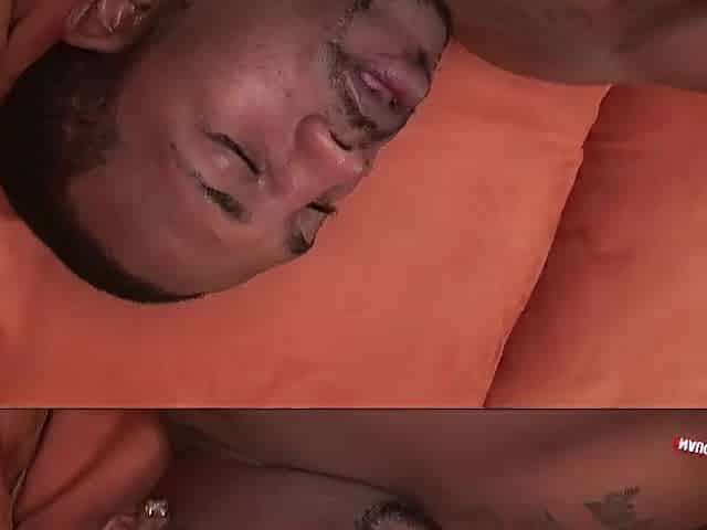 Large ebony butt bottom working out his schlong with a toy in his butt until large cum. View from the back