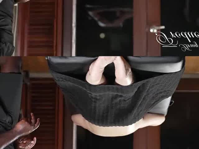 BTS: Sexy Black in LED Mask Gags On Monster Ramrod.