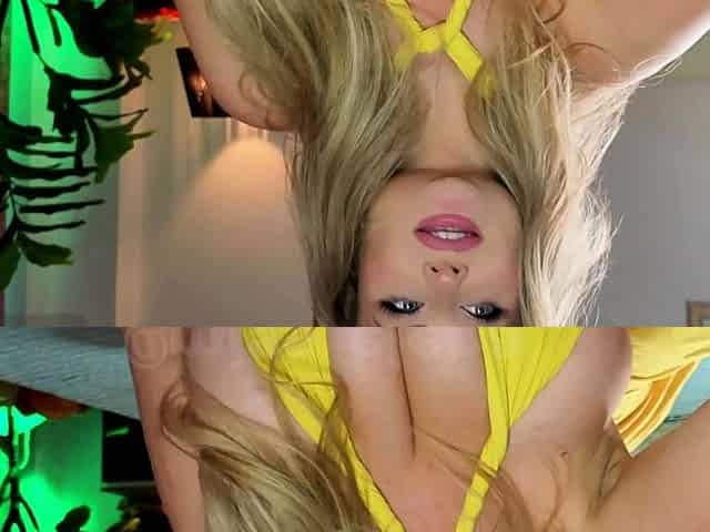 Perfect booty Blonde rides my cock on a sofa in hot thong