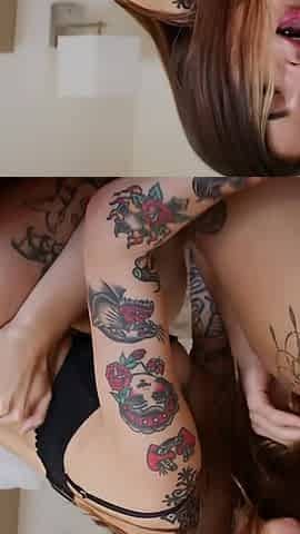 Tattooed MILF Gets Ridden by a Muscular Black Guy on the Couch