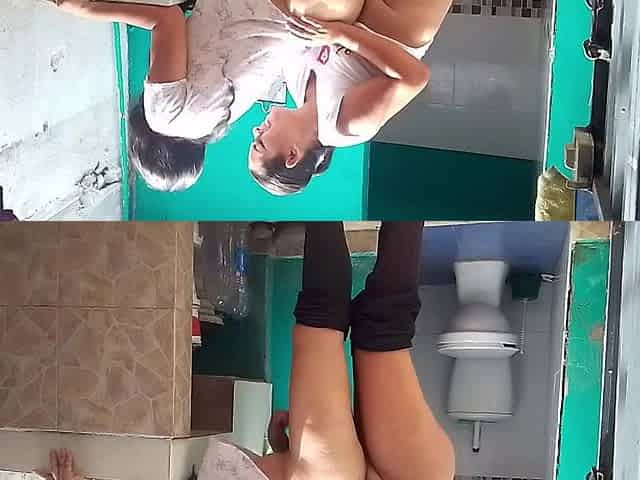 Lesbian Sex in the Gym Bathroom Ends in Mutual Orgasm