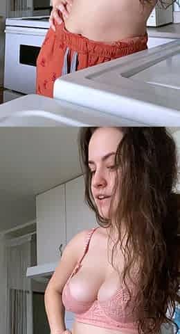 Sexy Blonde Babe With Big Boobs Strips Bra