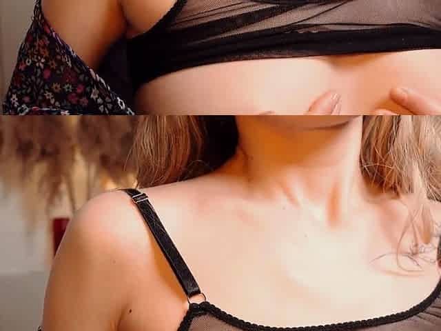 Seductive babe Kimysenpai entices in black lingerie and fishnet, delivering oral pleasure and hitting that sweet spot