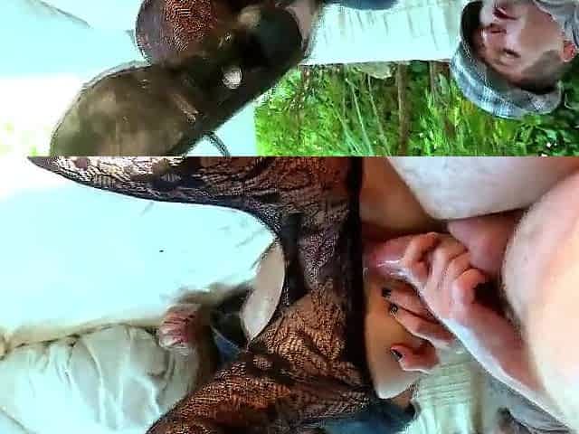 Brunette Slut Gives Blowjob To Big Cock Outdoors