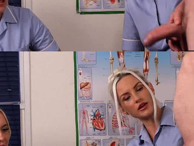 Stunning nurse voyeurs teasing a guy