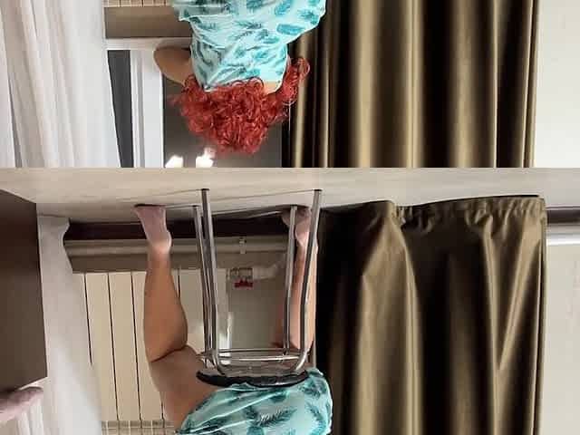 Cute redhead MayaLis gets between her new handyman's legs to get some piping for herself