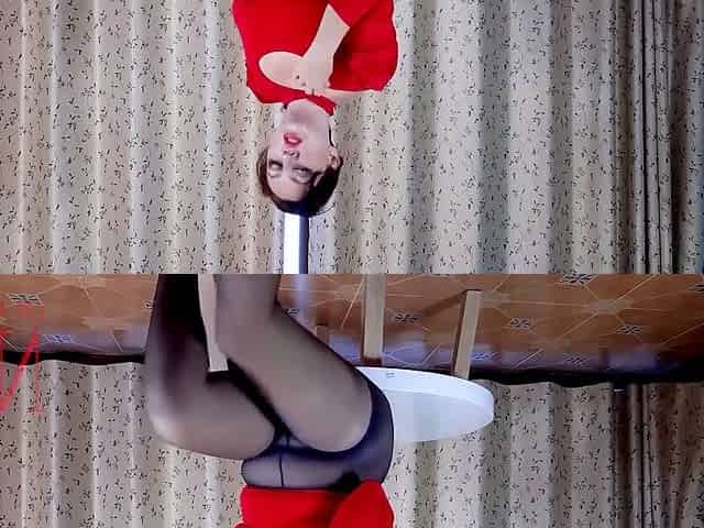 Seductive lady in pantyhose and high heels performs a tantalizing strip tease at the exclusive table