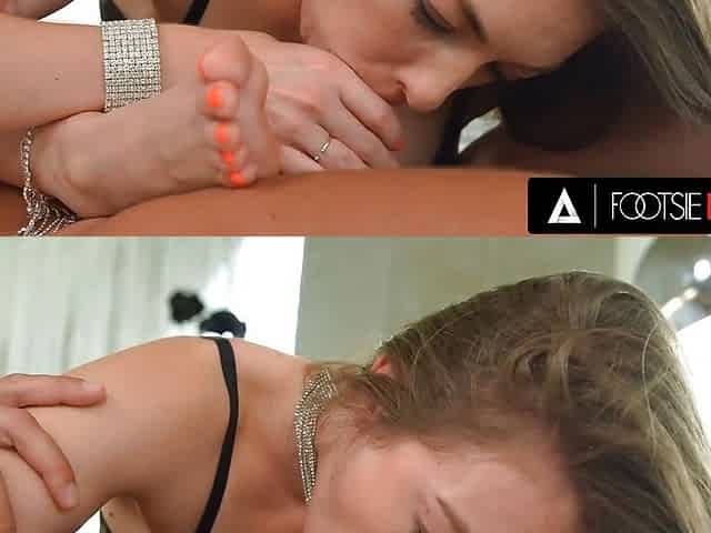 "FOOTSIE BABES - Sexy Emerald Ocean Uses Her Feet To Make Her Man Cum On Them"