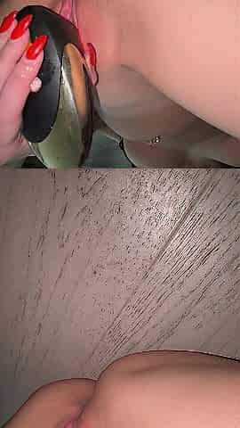 Front view of me riding a giant 8 inch pink sex tool with my pierced nipps getting actually hard