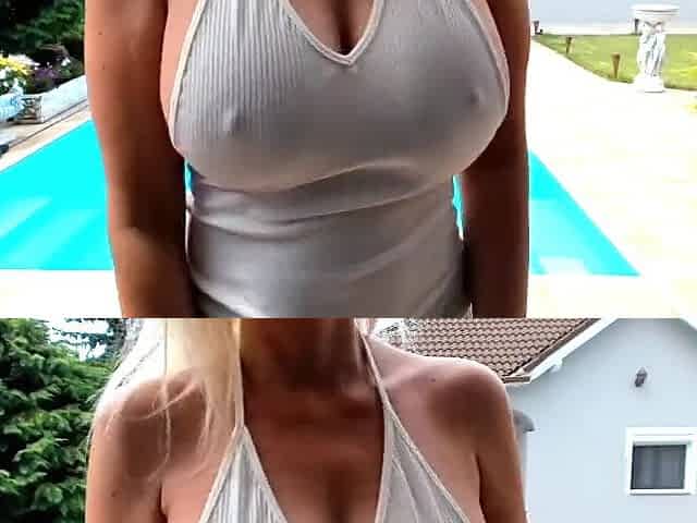 Exhibitionist blonde bitch loves to show her huge tits