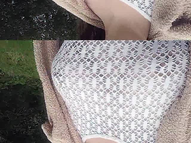 Spouse films sexy wife in the park showing her cunt throughout lace pants