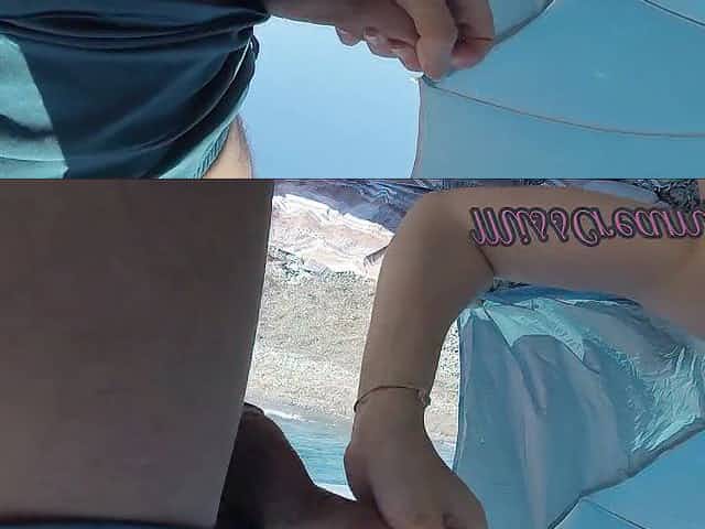 Exposed beach summer day! Pee and sunbathed on public beach and then jerked off boyfriend rod