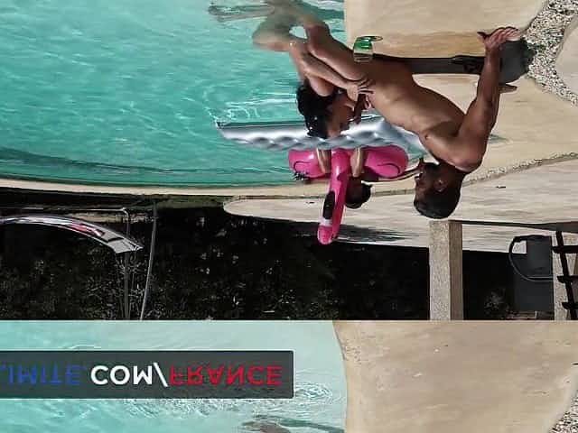 Mya the exhibitionist seduces Lorenzo around the pool