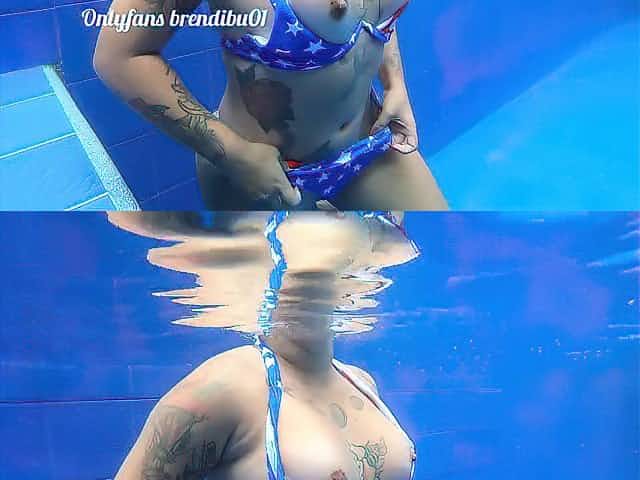 Hidden pool cam shows Arab girl playing with her big natural tits while masturbating with jet stream!