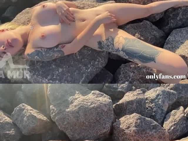 Hot Exhibitionist Sunbathing And Playing With Her Clit On A Public Beach