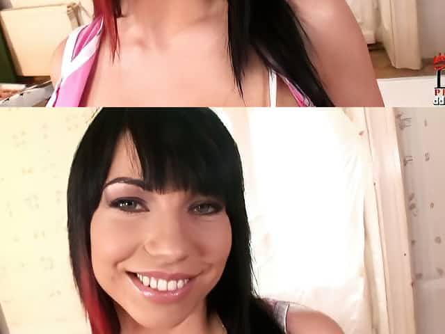 Busty prick tease Dolly P loves dancing and she's a true home nudist