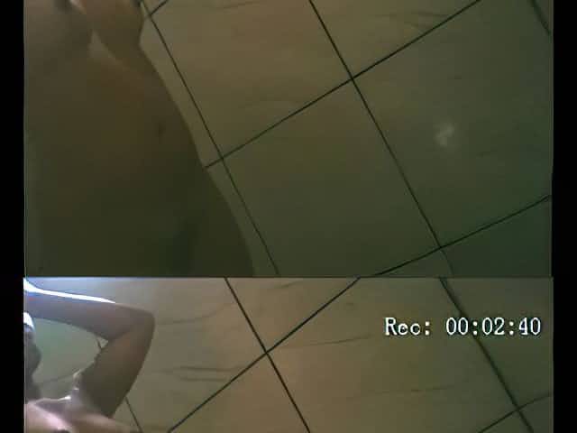 Showering body, toweling and flashing cunt on spy camera