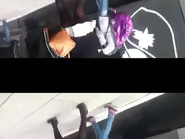 Asian chick in a voyeur downblouse wearing a pink bra nice tits