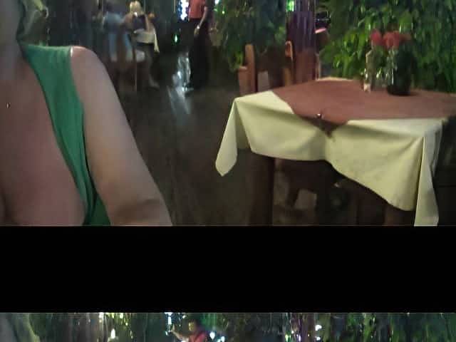 Cougar is doing a public flashing in a restaurant
