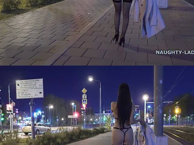 Nigh downtown with Russian MILF exhibitionist flashing