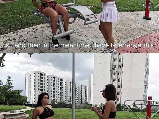 Exhibitionist lesbians have fun touching each other on the street in public 2
