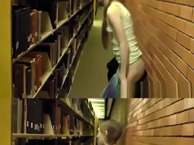 Naked girl in library