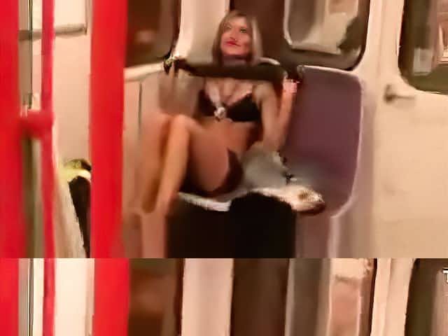 Girlfriend flashes her tits and pussy on the train