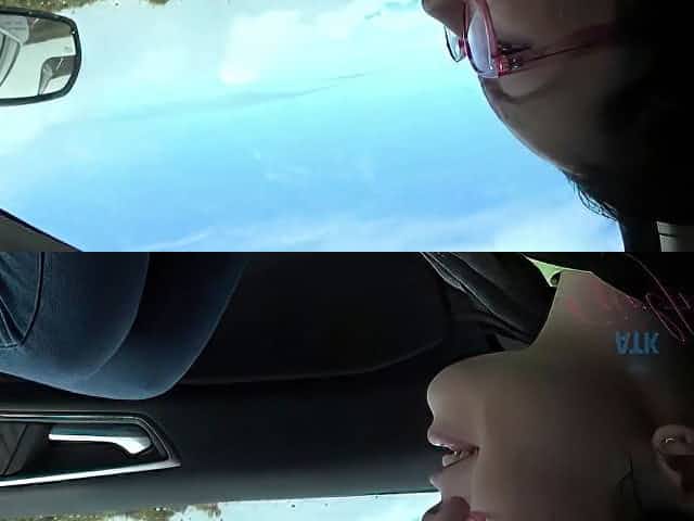Ginger exhibitionist rides cock in a truck