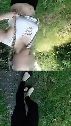 Flashing in the woods. Outdoor exhibitionist