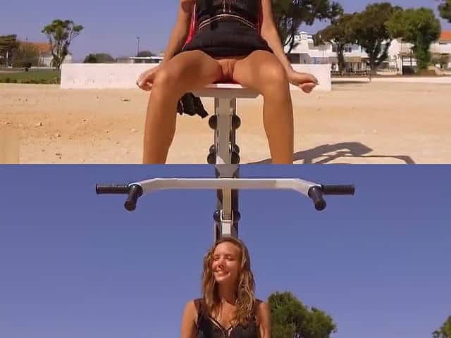 Pretty Blonde Exhibitionist Exposes Her Body To Two Dicks