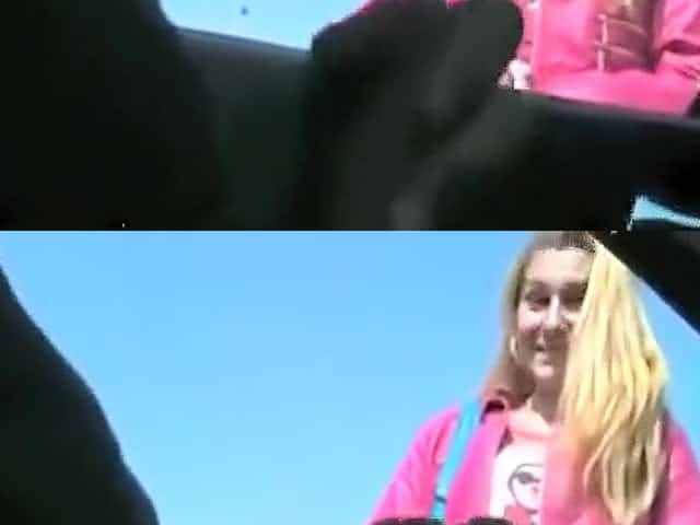 Sexy flashing blonde Ashley Riders outdoor exhibitionism and amateur voyeur babe exposing tits in public