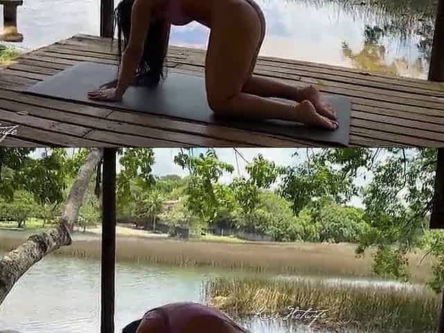 Like a wonderful married whore, I did yoga by the lake wearing a swimsuit that was totally wedged in my vagina.